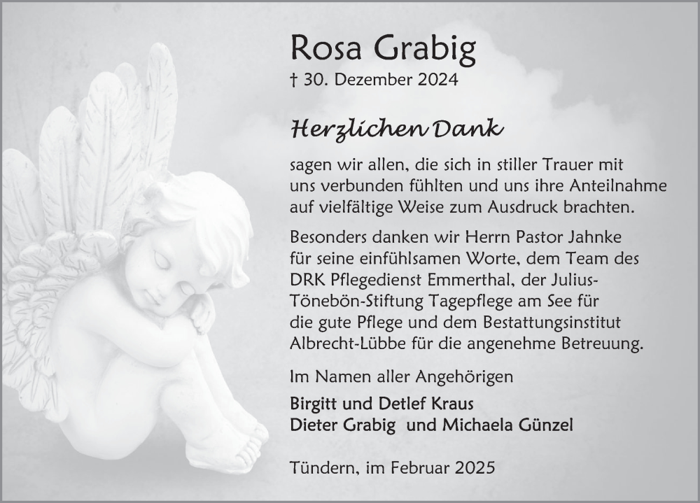 Hier finden Sie alle Traueranzeigen aus der Zeitung, die bisher für Rosa Grabig erschienen sind. Weitere Traueranzeigen, die in der Zeitung erscheinen, werden hier ebenfalls aufgelistet