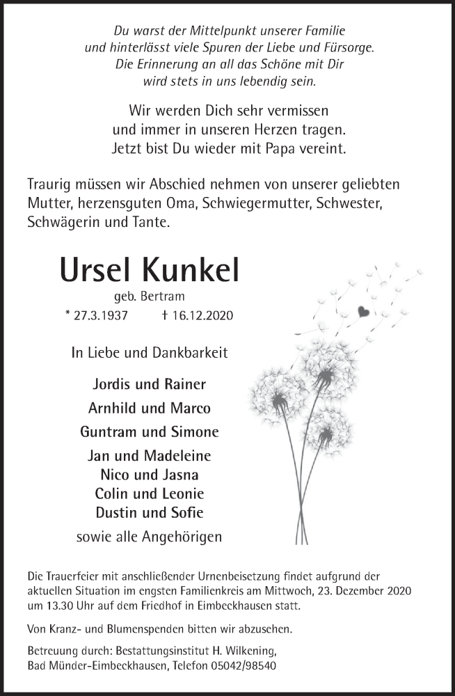 Hier finden Sie alle Traueranzeigen aus der Zeitung, die bisher für Ursel Kunkel erschienen sind. Weitere Traueranzeigen, die in der Zeitung erscheinen, werden hier ebenfalls aufgelistet