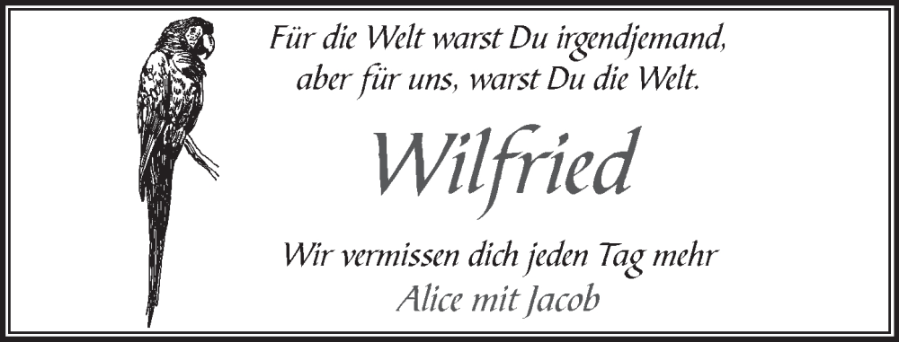 Hier finden Sie alle Traueranzeigen aus der Zeitung, die bisher für Wilfried erschienen sind. Weitere Traueranzeigen, die in der Zeitung erscheinen, werden hier ebenfalls aufgelistet