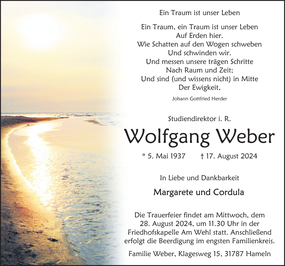 Hier finden Sie alle Traueranzeigen aus der Zeitung, die bisher für Wolfgang Weber erschienen sind. Weitere Traueranzeigen, die in der Zeitung erscheinen, werden hier ebenfalls aufgelistet